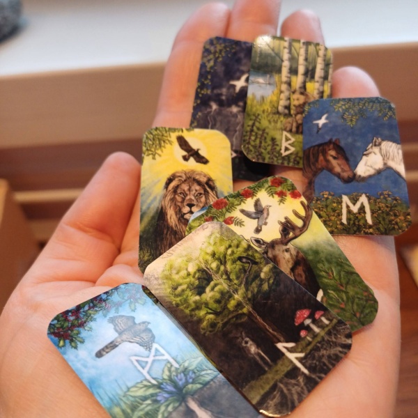 „Looduse ruunid“ on pühendatud Põhjamaa ilule ja puhta looduse tervendavale väele. Kaardipaki maalilised kujutised koos ruunidega seotud taimede, loomade ja lindudega pakuvad ainulaadset võimalust kogeda ruunide tähendust läbi ürglooduse. Iga kaart avab ukse looduse sügavamate kihtideni – sinna, kus sümbolid, märgid ja vaikus hakkavad ise kõnelema.
