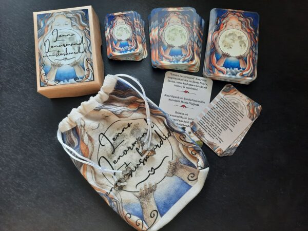 „Kursuse hinnas sisaldub kaardipakk, mis toetab sinu õpinguid Lenormand kaartide algajate kursusel (online, Zoom).“ Omal valikul – mini, keskmine või suur, kaardid saadetakse posti teel (vajalik lisada oma postiaadress, telefoninumber ja e-post).