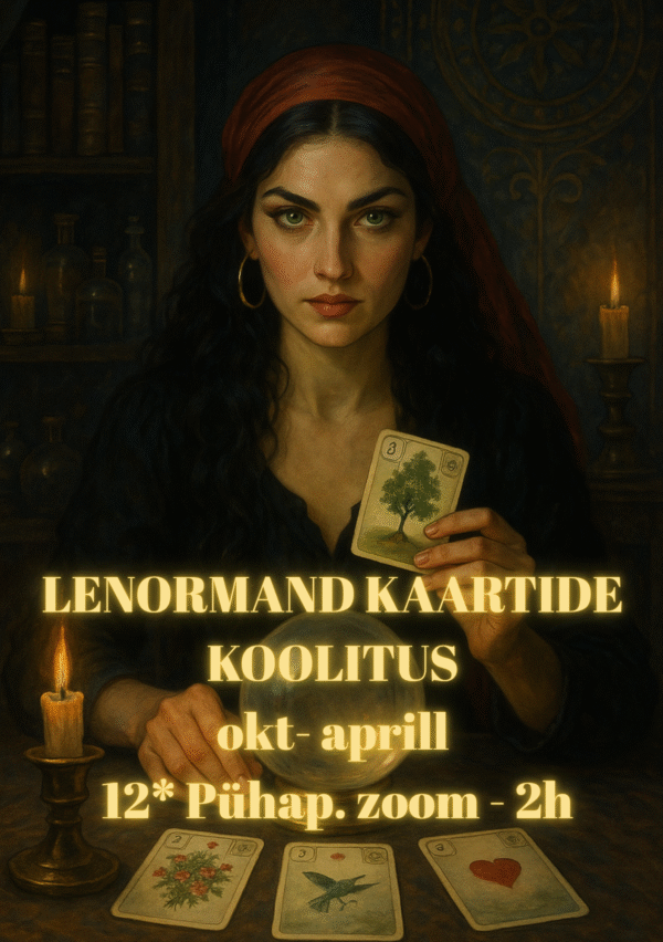 Lenormand kaartide algajate kursus (online, Zoom) on loodud selleks, et anda igale osalejale kindel alus kaartide iseseisvaks tõlgendamiseks. Kursuse eesmärk on arendada intuitiivset mõtlemist, õpetada kaarte süsteemselt lugema ning näidata, kuidas neid igapäevases elus ja otsuste tegemisel kasutada.